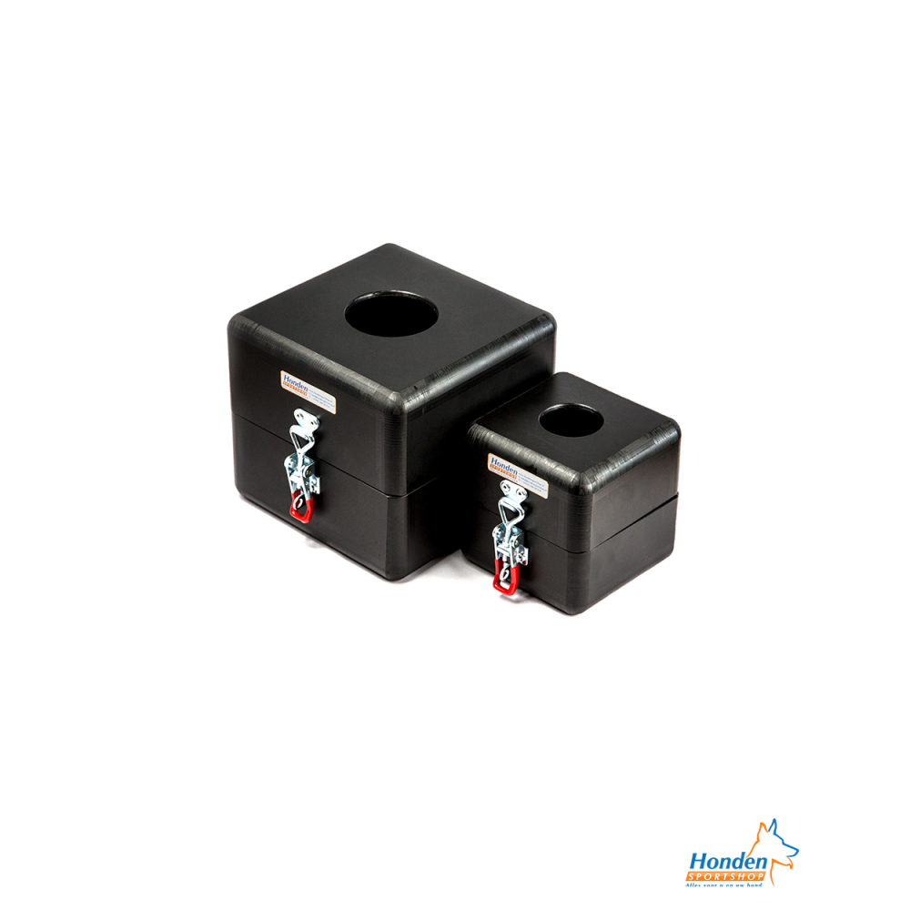 The detectionbox from Hondensportshop is made out of high-quality, durable plastic and gets weighted so the dogs cannot run them over easily.